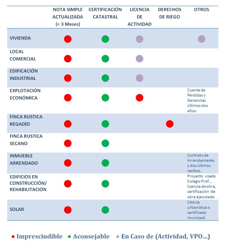 * Toda esta documentación si queremos evitar retrasos, confusiones y acortar los plazos en la tramitación de la Tasación Hipotecaria, es aconsejable aportarla en el momento de la visita al inmueble objeto de valoración.